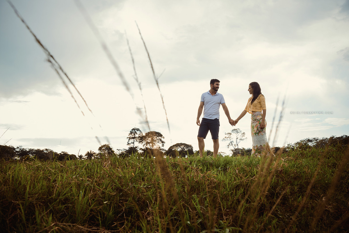 A Debora me dizia que sempre pensava em fazer o ensaio em uma plantaçao, algo que o Diego trabalha e que representa um pouco sobre eles. Realizamos parte do ensaio no sitio do irmao da Debora e depois seguimos para o local de uma plantaçao, a uns 25km de onde estávamos, por um momento pegamos chuva na estrada, mas depois recebemos um céu lindo.